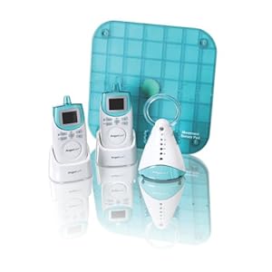 The deluxe version Angelcare will still detect a baby's slightest movements, even while she sleeps, and sound an alarm if no movement whatsoever is detected for 20 seconds. This new deluxe model has many added features. The nursery unit has a soft nightlight and room thermometer. Its temperature is displayed on the parents units, which can alert you when the temperature falls out of your preset range. This comes with additional new features which includes an out of range indicator, a parent's unit locator, optional voice activation and a color LCD on each Parent's unit which displays all the data. Each Parent's unit comes with 4 AAA rechargeable batteries and a charging base. This monitor continues to offer an optional tic feature. It will tick if movement is detected. This comes with additional features which include sound lights and movement indicator lights. The new Deluxe Angelcare model operates on both 900 MHz and 2.4 GHz frequencies. Its sound monitor operates on the 900 MHz frequency so there is no interference from 2.4 GHz equipment. The monitor has 8 channels and an 820' range. This includes ac adapters and battery backup option.